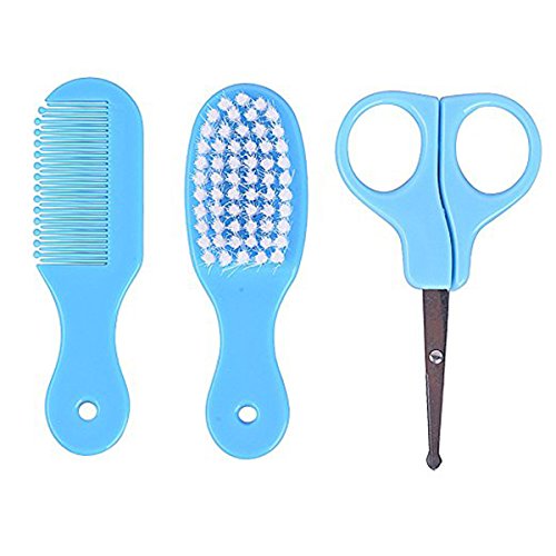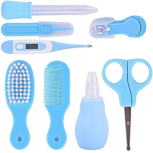 新生児用 ベビーハサミ 爪切りスーツ ベビーブラシ・くし 鼻吸い器高品質 8個セット (ブルー)
