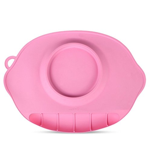 吸盤でしっかり安定 お食事マット 子供給食用具 撥水 防汚 柔らかい 食べこぼし防止 (ピンク)