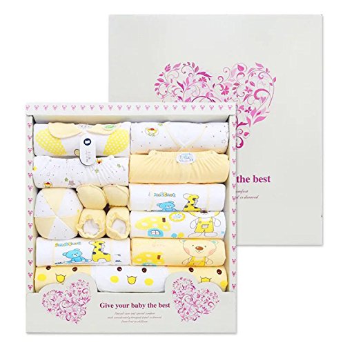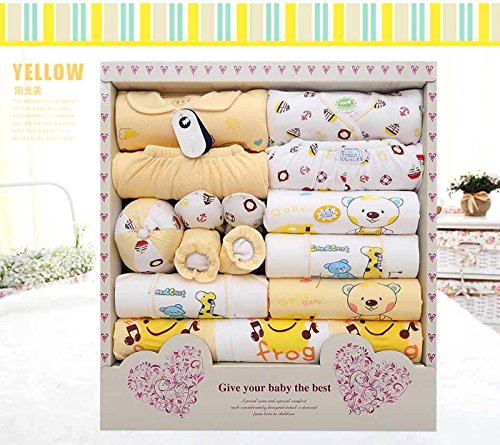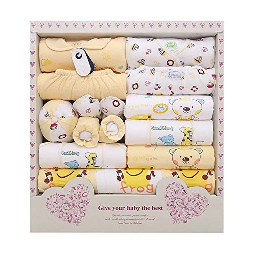 ベビー服 新生児 赤ちゃん ロンパース ベビー用品 出産準備 ベビー カバーオール 出産祝い ギフト セット ,オーガニックコットン ベビー 肌着 ギフトセット 出産準備 ベビー帽子 服 おくるみ 手袋 ブーツ よだれ掛け エプロン (四季 ) (黄)