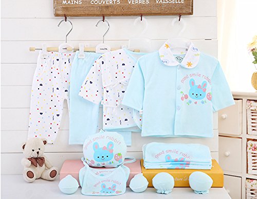 ベビー服 新生児 赤ちゃん ロンパース ベビー用品 出産準備 ベビー カバーオール 出産祝い ギフト セット ,オーガニックコットン ベビー 肌着 ギフトセット 出産準備 ベビー帽子 服 おくるみ 手袋 ブーツ よだれ掛け エプロン (四季 ) (ブルー-②)