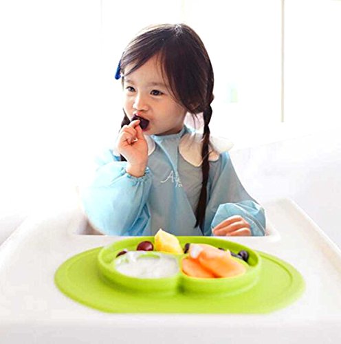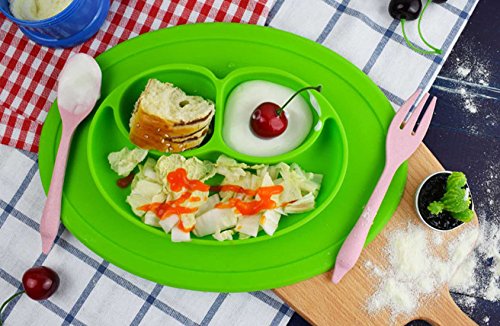防水シリコン 吸盤付き 強い吸着力 遊び食べ 離乳食 ベビー食器 ランチ皿 お食事マット 赤ちゃんミニマット 子供食器 ベビー用品. (緑)