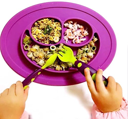 防水シリコン 吸盤付き 強い吸着力 遊び食べ 離乳食 ベビー食器 ランチ皿 お食事マット 赤ちゃんミニマット 子供食器 ベビー用品. (パープル)