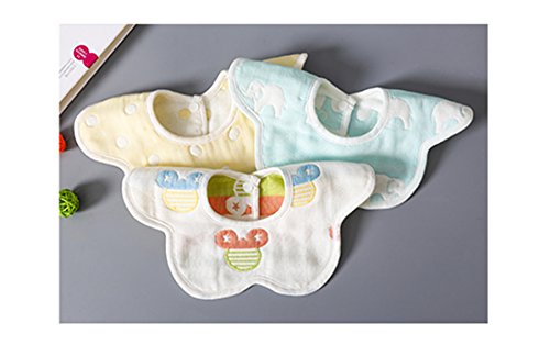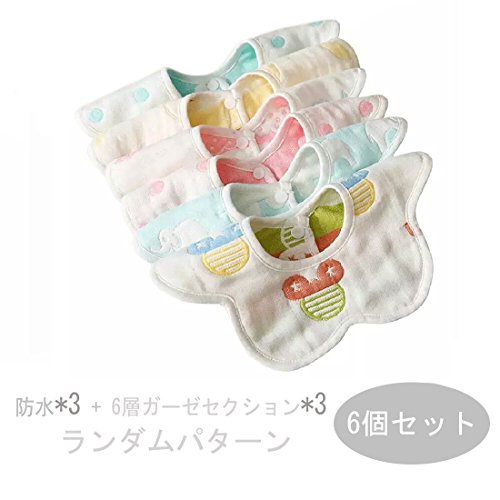 ベビービブ食事 6層ガーゼセクション 柔らかい360度回転可よだれかけ スナップビブ 3枚セット 5枚セット 6枚セット 防水 両面使用可能 ( ランダムパターン) (3枚(防水) + 3枚 (6層ガーゼセクション))