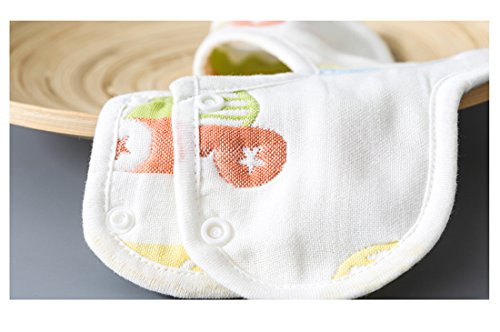 ベビービブ食事 6層ガーゼセクション 柔らかい360度回転可よだれかけ スナップビブ 3枚セット 5枚セット 6枚セット 防水 両面使用可能 ( ランダムパターン) (5枚 (6層ガーゼセクション))