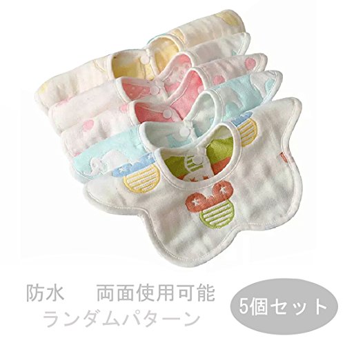 ベビービブ食事 6層ガーゼセクション 柔らかい360度回転可よだれかけ スナップビブ 3枚セット 5枚セット 6枚セット 防水 両面使用可能 ( ランダムパターン) (5枚(防水 両面使用可能))