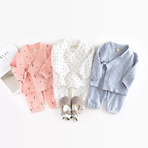 新生児 子供 ベビー服 春夏秋服(2個:長袖+ズボン) コットン100% 男の子 女の子 (含まれていない:アクセサリー ) (L(90CM), 白)