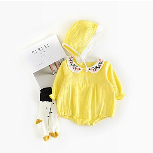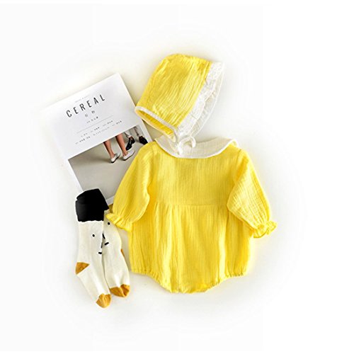ベビー服 カバーオール 長袖 ロンパース 帽子付き 春夏秋服 コットン100% 男の子 女の子 (含まれていない:靴下 ) (M(73CM), 黄)