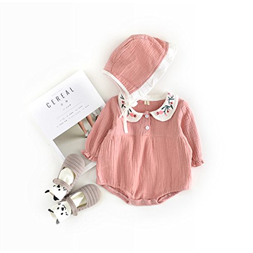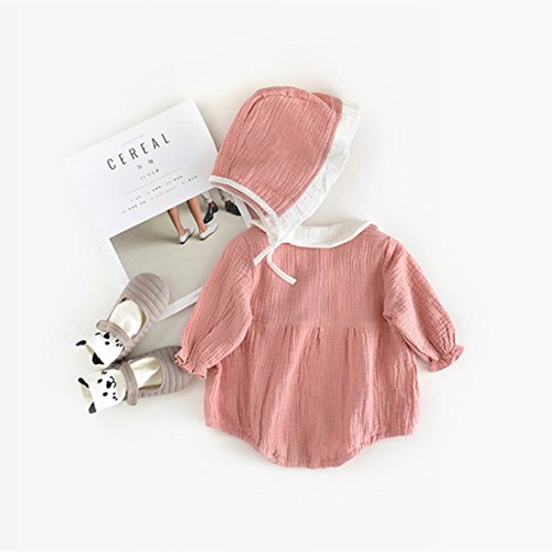 ベビー服 カバーオール 長袖 ロンパース 帽子付き 春夏秋服 コットン100% 男の子 女の子 (含まれていない:靴下 ) (M(73CM), ピンク)