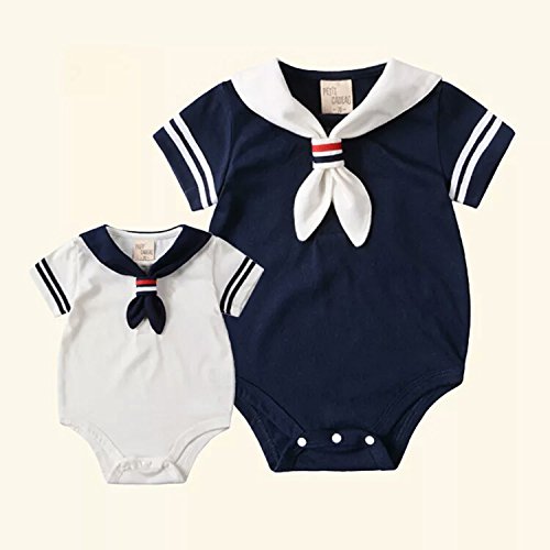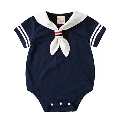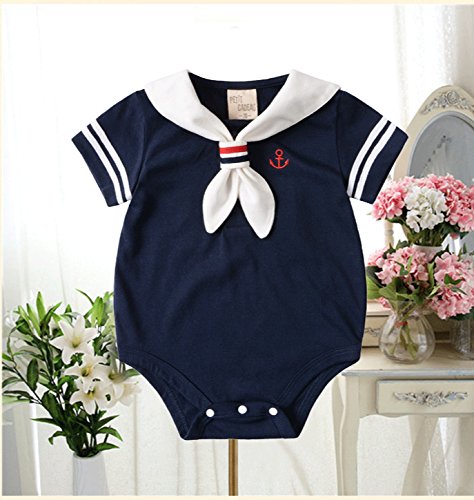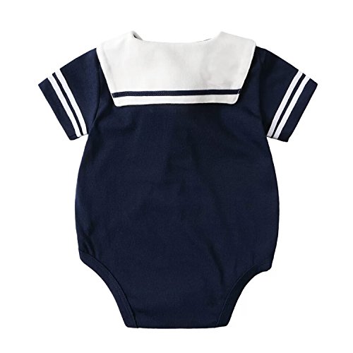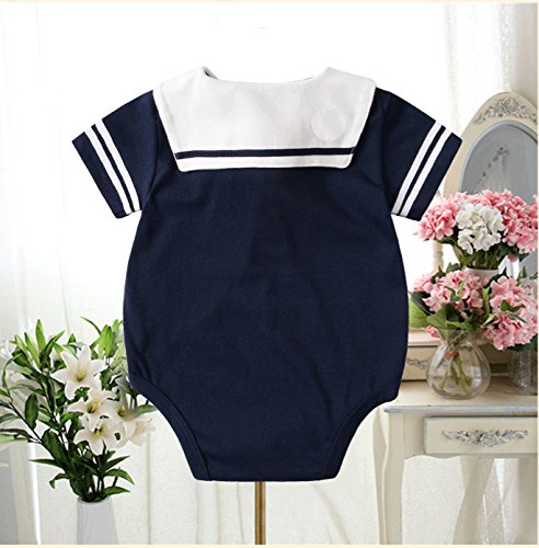 Shanshan ベビー服 セーラー服 ロンパース 幼児サイズ 半袖 男の子 女の子 男女兼用 子供服 赤ちゃん 写真 道具 夏用 綿 可愛い (ダークブルー, 90cm)