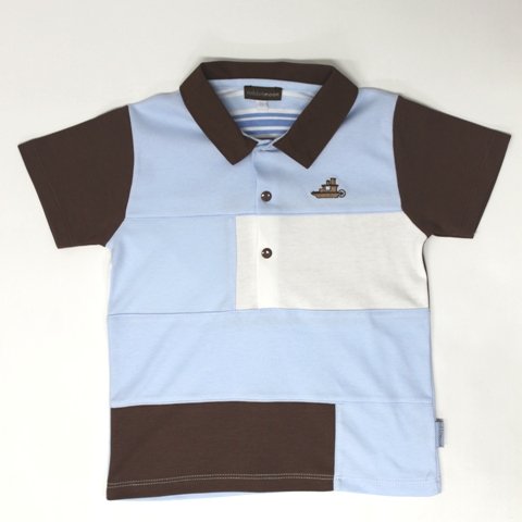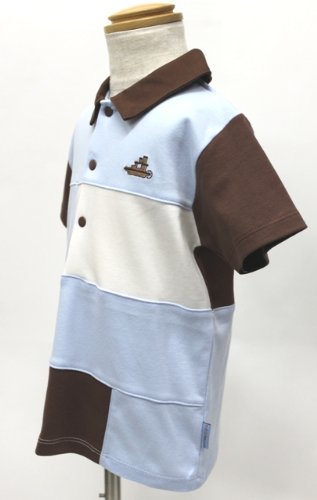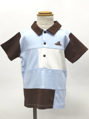 【rabbit moon ラビットムーン】ポロシャツ☆ブラウン×ブルー<br>4Y
