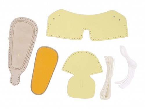 『raco(ラコ) ベビー 手作りファーストシューズキット 858 イエロー』 お子様のファーストシューズにおすすめ!天然レザーのちょっと贅沢なカジュアルシューズ☆ 愛情のこもった手作り感が嬉しい、ファーストシューズを作る1足分の手作りキットです。裁断されたレザーと縫い紐が入っているので、レザーに施された針穴を縫い合わすだけの簡単ハンドメイド♪ コツや縫い方などの詳しい説明書も付いているので、安心して作業できます。靴紐やインソールも付いているので、完成したらすぐに履いていただけます。天然皮革なので、風合いや質感もGOOD!赤ちゃんの初めての靴をつくってみませんか?素敵な思い出になること間違いなし♪プレゼントにも最適です☆ (本キットには革細工用の針(クロスステッチ針)は入っておりません。同時に二本の針を使用しますので、予備を含め数本の針をご用意頂く事をおすすめします。また、縫い糸をカットするためのハサミをご用意下さい。)●サイズ換算目安:S(11-11.5cm)・M(12-12.5cm)・L(13-13.5cm)※展開サイズ:キッズ
