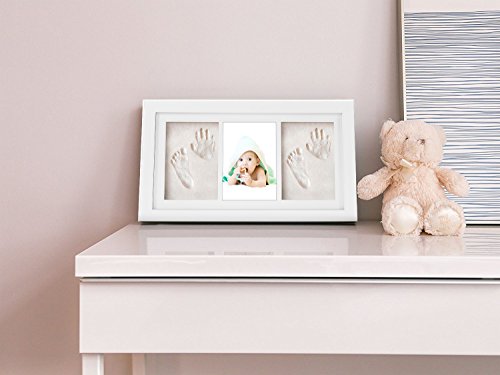 Relaxtoo 赤ちゃんの手形 足形フレーム フットプリントフレーム 木製フレーム ベビー記念品 誕生日 写真 置き掛け兼用 無毒で 安全粘土 出産祝いの品用 見開き三面タイプ ベイビーギフト