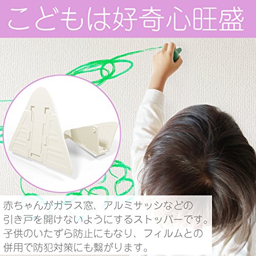 - 【用途】好奇心旺盛な赤ちゃんがガラス窓、アルミサッシなどの引き戸を開けないようにするストッパーです。子供のいたずら防止にもなり、フィルムとの併用で防犯対策にも繋がります。