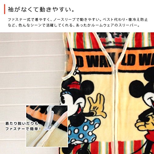 ディズニーキャラクターのスリーパーです。軽くて暖か、やわらかなニューマイヤー織りのベスト。ファスナー式なのでしっかりと体を暖めます。
