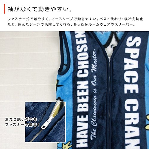 ディズニーキャラクターのスリーパーです。軽くて暖か、やわらかなニューマイヤー織りのベスト。ファスナー式なのでしっかりと体を暖めます。