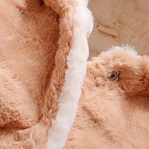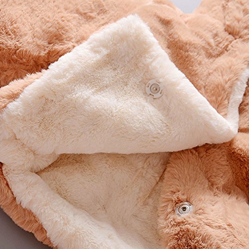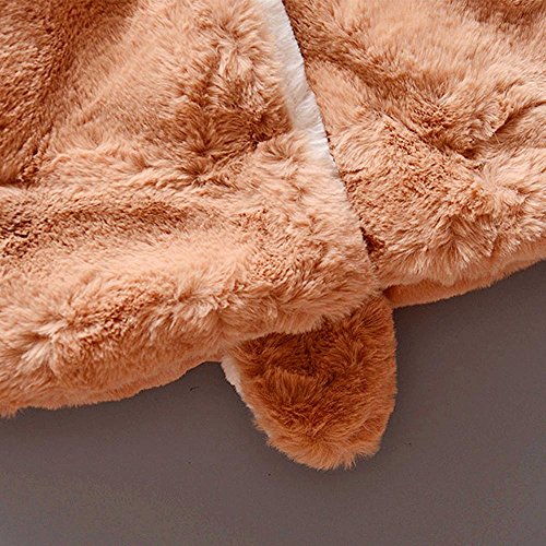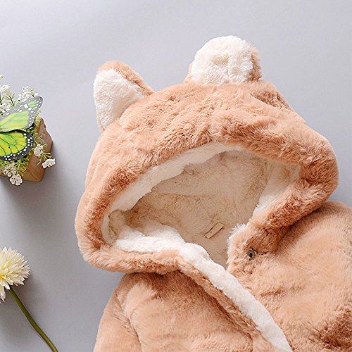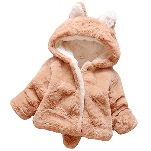 rimiアウター 長袖 フード付き 無地 耳飾り あったか 防寒 ふわふわ もこもこ ベビー キッズ 女児 冬 キュート 秋 コート ショートコート 超可愛い (サイズ14, ブラウン )