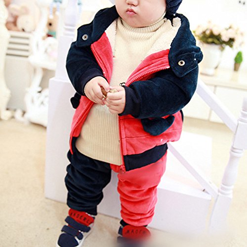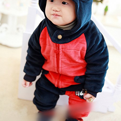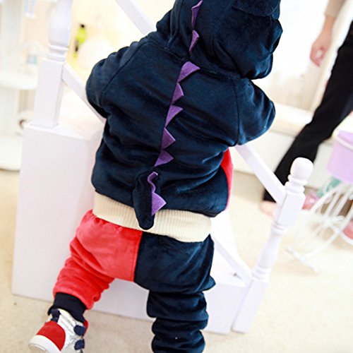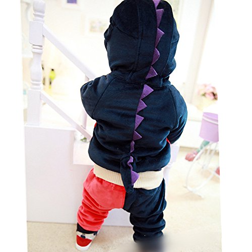 rimiベビー 上下セット 長袖 アウター 恐竜柄 ケラトザウルス ダイノソア ディノサウルス 恐竜 厚地 防寒 2点セット 男女 裏起毛 ベビー服 可愛い キュート (90, ネイビー )