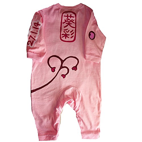 うろこ パンダ ロングロンパース 名入れ 出産祝い 手描き (70, ピンク)