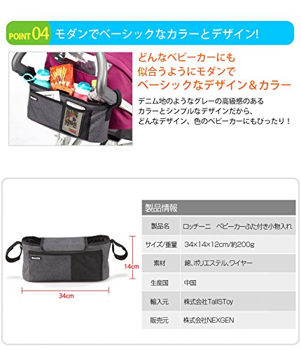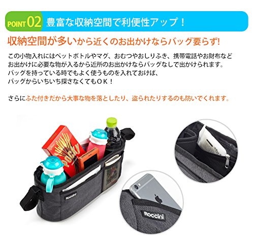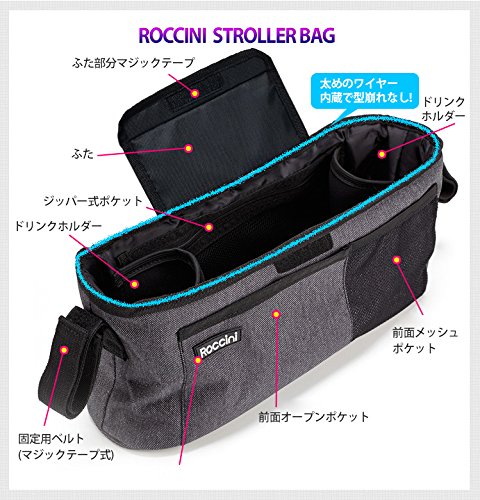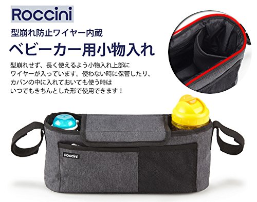 Roccini 型崩れ防止ワイヤー内蔵 ベビーカー小物入れ ベビーカー バッグ(グレー)