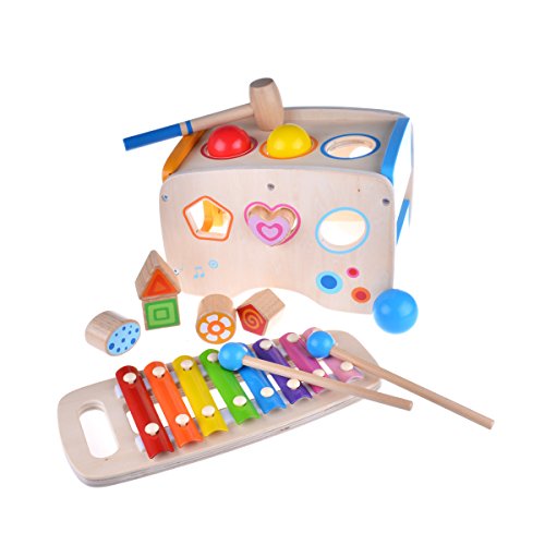 木製の学習ハンマーリング&打撃おもちゃ+ 8ノートキロフォン+シェイプカラー認識、誕生日ギフトおもちゃ3歳向け5歳以上子供用赤ちゃん幼児少年少女