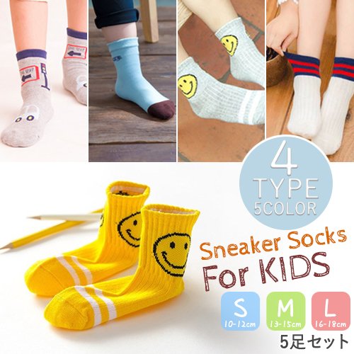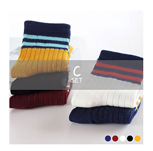キッズ スニーカーソックス 5足セット ソックス 0歳~11歳 4タイプ 5色 キッズ ソックス クルーソックス 子供用 靴下 ベビーソックス 靴下 小学生 幼稚園 幼児 育児 子供の日 キッズ用 女の子 男の子 (M, C set 5足(2LINE))