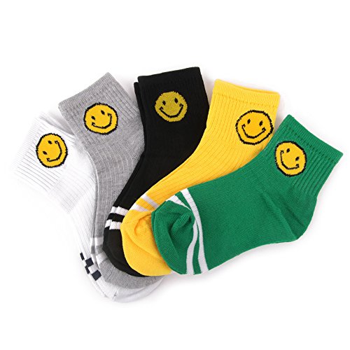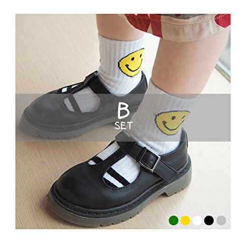 キッズ スニーカーソックス 5足セット ソックス 0歳~11歳 4タイプ 5色 キッズ ソックス クルーソックス 子供用 靴下 ベビーソックス 靴下 小学生 幼稚園 幼児 育児 子供の日 キッズ用 女の子 男の子 (M, B set 5足(スマイル))