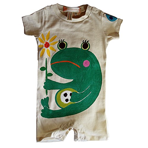 サッカー カエル ロングロンパース 名入れ 出産祝い 手描き (70, ナチュラル)