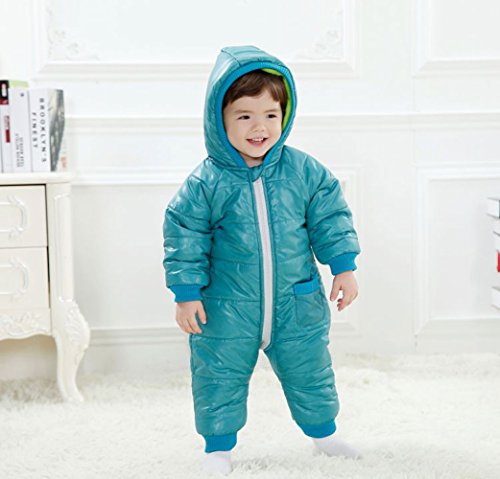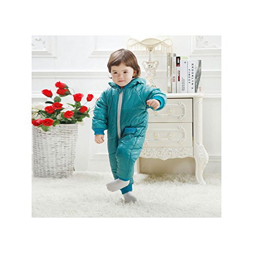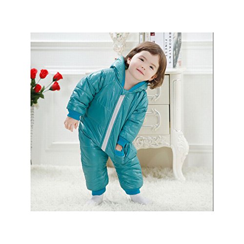 子供用ダウンロンパース センタージップ モコモコカバーオール 防寒着 80/90/100 (80号(6-12か月), ブルー)
