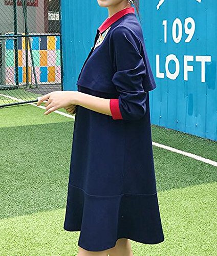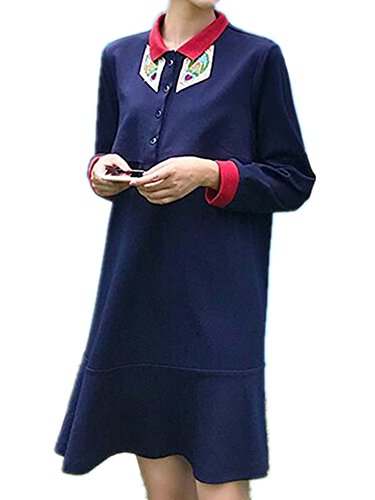 (オーセンティック) AUTHENTIC マタニティ ウェア ワンピース 長袖 授乳服 妊婦服 産前 産後 授乳口付き お出かけ (L, ネイビー)