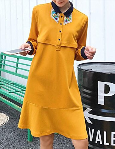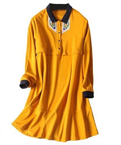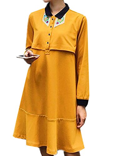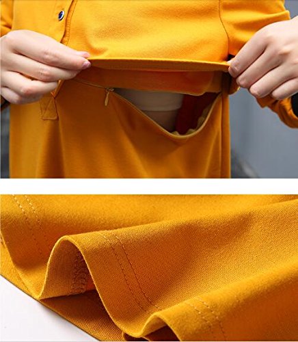 (オーセンティック) AUTHENTIC マタニティ ウェア ワンピース 長袖 授乳服 妊婦服 産前 産後 授乳口付き お出かけ (L, イエロー)