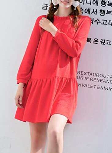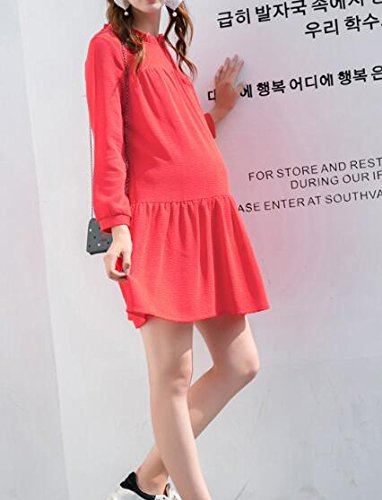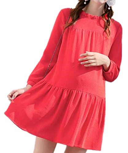 (オーセンティック) AUTHENTIC マタニティ ウェア ワンピース フレア 妊婦服 産前 産後 体型カバー お出かけ 優雅 (L, レッド)