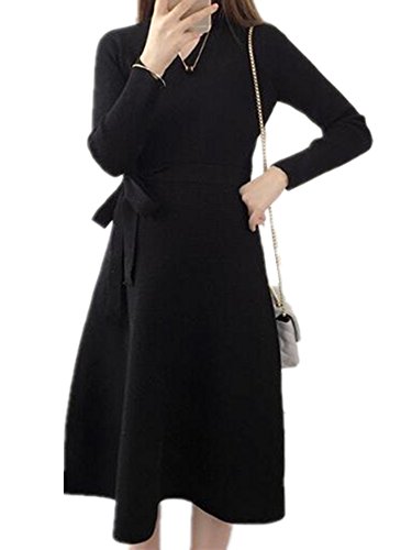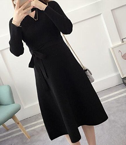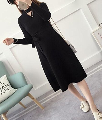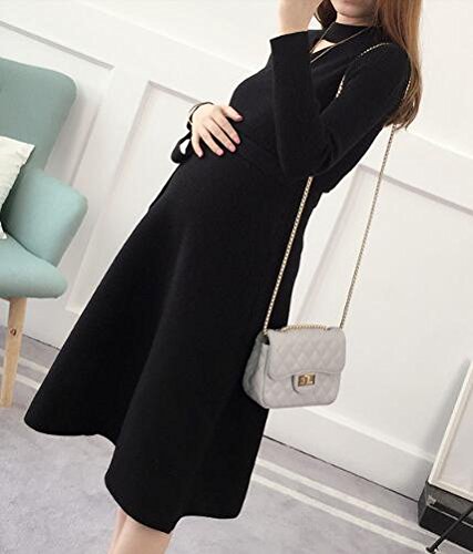 (オーセンティック) AUTHENTIC マタニティ ニット ワンピース 妊婦服 産前 産後 ストレッチ 長袖 フォーマル (Free, ブラック)