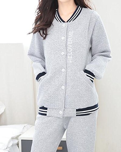 (オーセンティック) AUTHENTIC マタニティ 授乳口付き ルームウェア コットン 前開き 産前産後 セットアップ (XL, グレー2)