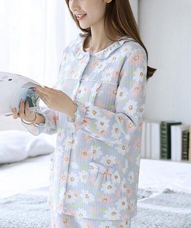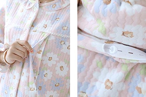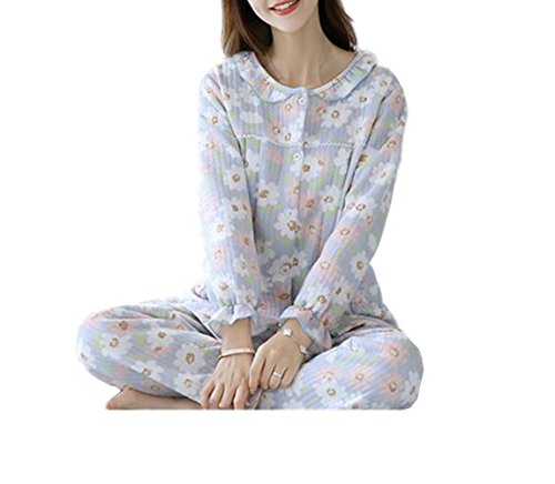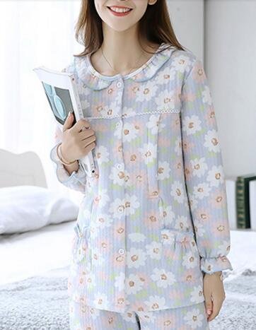 (オーセンティック) AUTHENTIC マタニティ パジャマ 授乳口付き ルームウェア 前開き 産前産後 セットアップ 綿 秋冬 (M, ブルー*花柄)