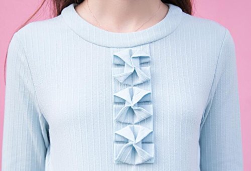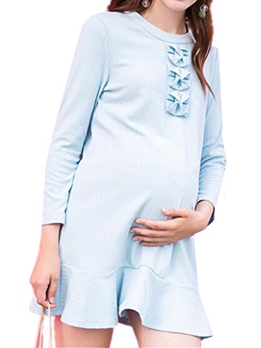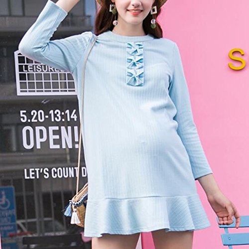 (オーセンティック) AUTHENTIC マタニティ ワンピース 長袖 授乳服 妊婦服 産前 産後 フリル お出かけ フレア (M, ブルー)