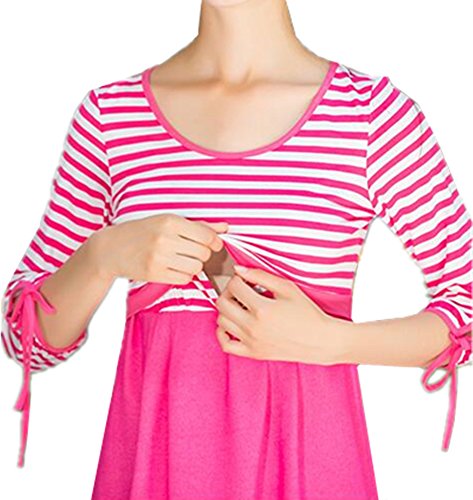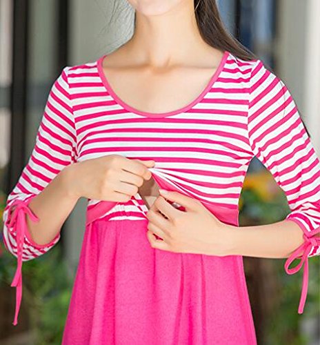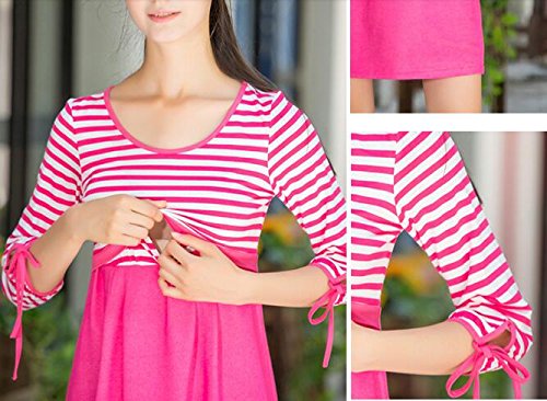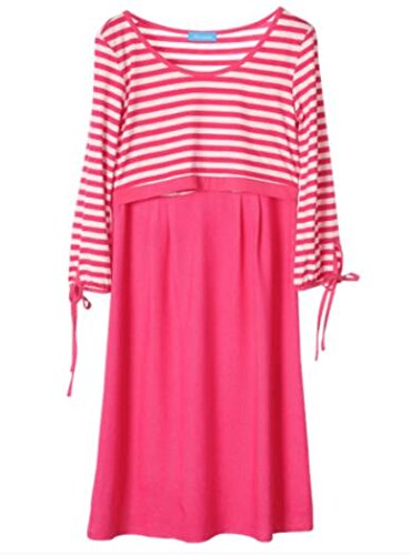 (オーセンティック) AUTHENTIC マタニティ ワンピース 授乳服 妊婦服 産前 産後 授乳口付き ボーダー フォーマル (XL, ローズ)