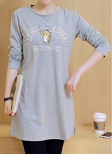 (オーセンティック) AUTHENTIC マタニティ ワンピース 授乳服 授乳口付き 長袖 妊婦服 産前 産後 ルームウエア (M, グレー)