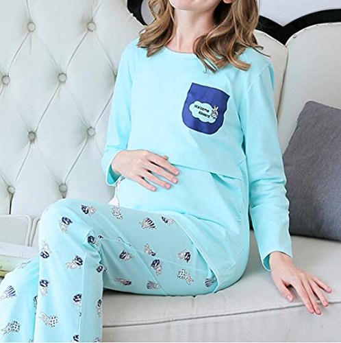 (オーセンティック) AUTHENTIC マタニティ パジャマ 授乳口付き 授乳服 産前産後 セットアップ コットン 部屋着 (XL, ブルー)