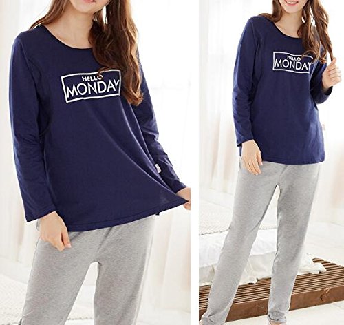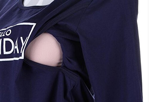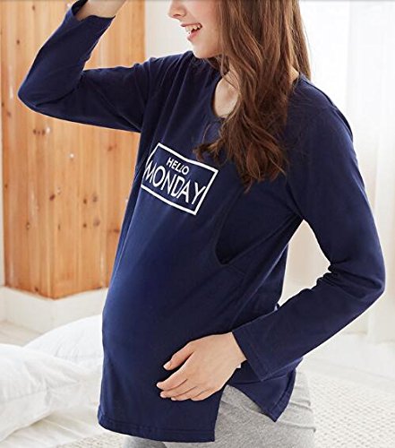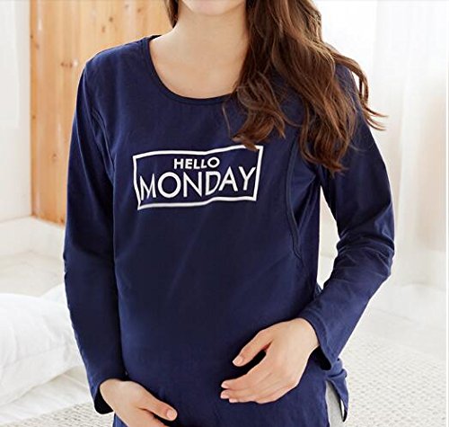 (オーセンティック) AUTHENTIC マタニティ パジャマ 授乳口付き 授乳服 産前産後 セットアップ 綿 長袖 部屋着 (M, ブルー)
