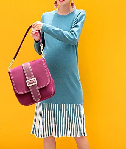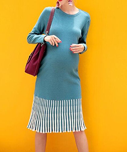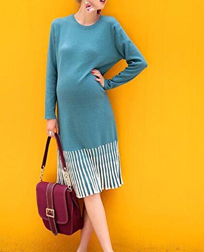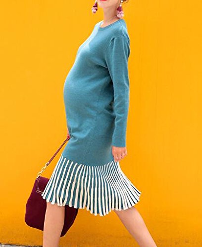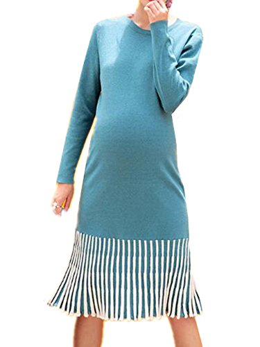 (オーセンティック) AUTHENTIC マタニティ ニット ワンピース ロング丈 妊婦服 産前 産後 ストレッチ 上品 秋冬 (Free, ブルー)