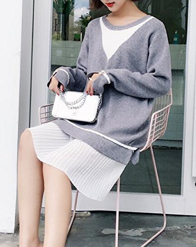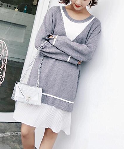 (オーセンティック) AUTHENTIC マタニティ ニット ワンピース プリーツ 妊婦服 産前 産後 ゆったり 秋冬 お出かけ (Free, グレー)