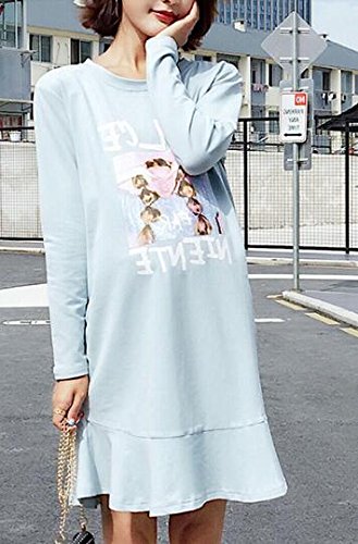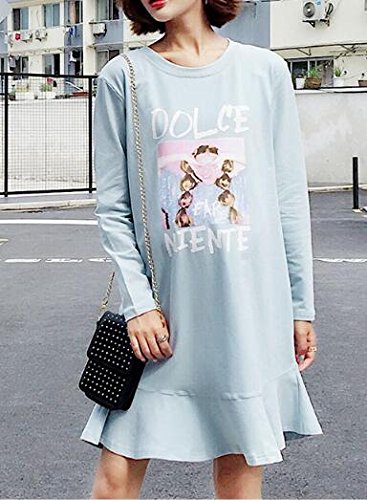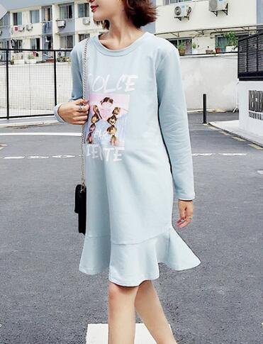 (オーセンティック) AUTHENTIC マタニティ ワンピース 長袖 フレア 妊婦服 産前 産後 お出かけ カジュアル (L, ブルー)