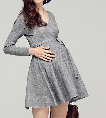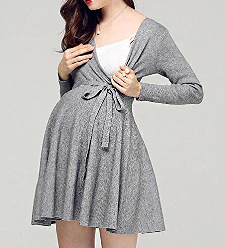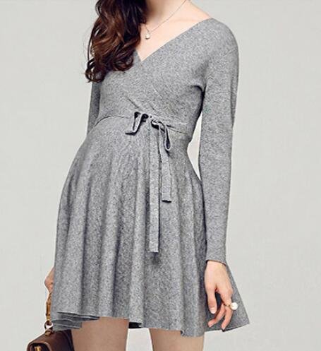(オーセンティック) AUTHENTIC マタニティ ワンピース ニット Vネック 妊婦服 産前 産後 ウエストベルト フォーマル (Free, グレー)