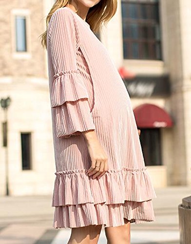 (オーセンティック) AUTHENTIC マタニティ ワンピース ベロア フリル 長袖 授乳服 妊婦服 産前 産後 授乳口付き (L, ピンク)