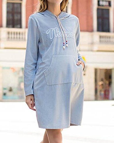 (オーセンティック) AUTHENTIC マタニティ ワンピース 授乳服 妊婦服 産前 産後 ジッパー 授乳口付き フード付き (L, ブルー)