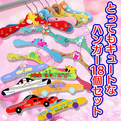 - カワイイ動物柄と乗り物柄のハンガーセットです。【セット内容】動物ハンガー(6種類)と動物ドットハンガー(6種類)と乗り物ハンガー(6種類)の18個