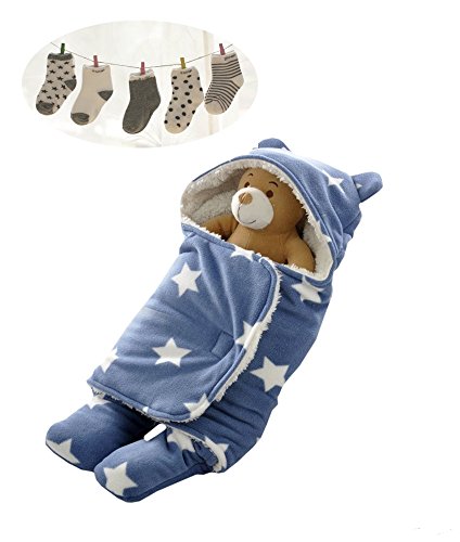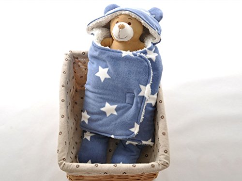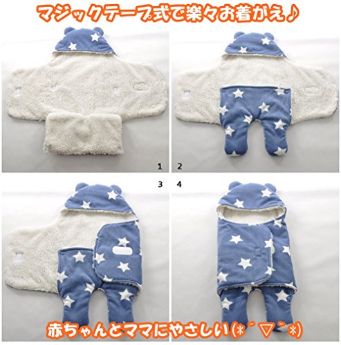 - クマさんのお耳がカワイイ(*´▽`*) 星柄がオシャレなデザインで、簡単に着せることのできるベビーおくるみです★ キュートなソックスとの大満足セットです♪