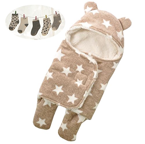 - クマさんのお耳がカワイイ(*´▽`*) 星柄がオシャレなデザインで、簡単に着せることのできるベビーおくるみです★ キュートなソックスとの大満足セットです♪