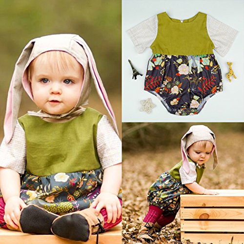 サクララ(Sakulala) ベビー服 かわいい 女の子 男の子 半袖 スプライス ドレス 新生児 小さめ ウサギベビー服 Oネック カジュアル かわいい シンプル 花見 お出かけ 通園 入園式 ファッション 2歳以下 4サイズ