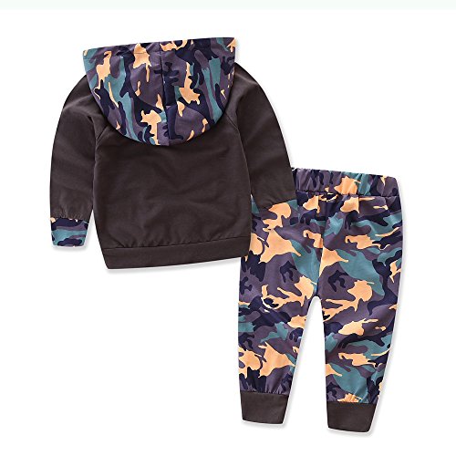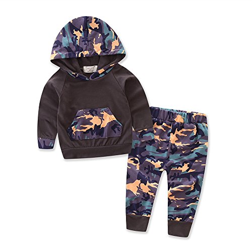 新生児キッズベイビーボーイズハンサムカモフラージュポケットパーカーパーカー+ロングパンツ衣装サイズ (80, カモフラージュ)